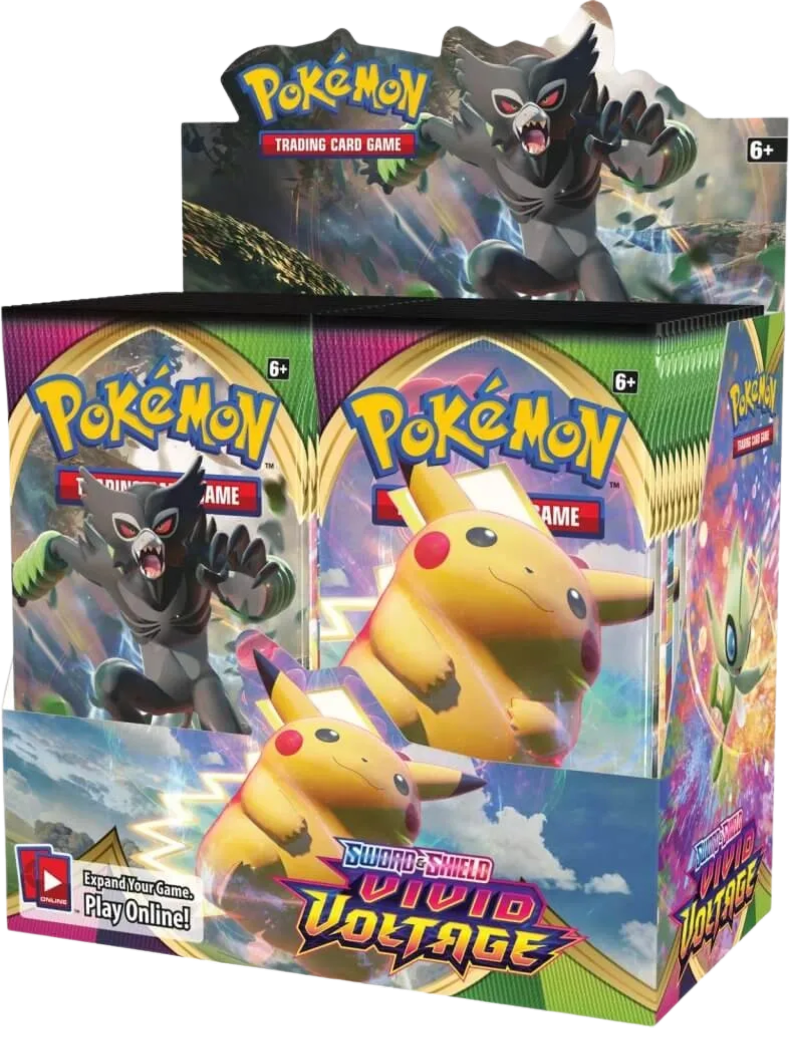 Discover new brilliance and maximum power in the Pokémon TCG: Sword & Shield—Vivid Voltage expansion as more Pokémon V appear, including the newly discovered Mythical Pokémon Zarude! Unique new Amazing Pokémon burst onto the scene with a rainbow splash, alongside more Pokémon VMAX…including the splendor, the majesty, the delightful round wonder that is Gigantamax Pikachu! Put a little color and a lot of spark into your deck or collection with the Sword & Shield—Vivid Voltage expansion!